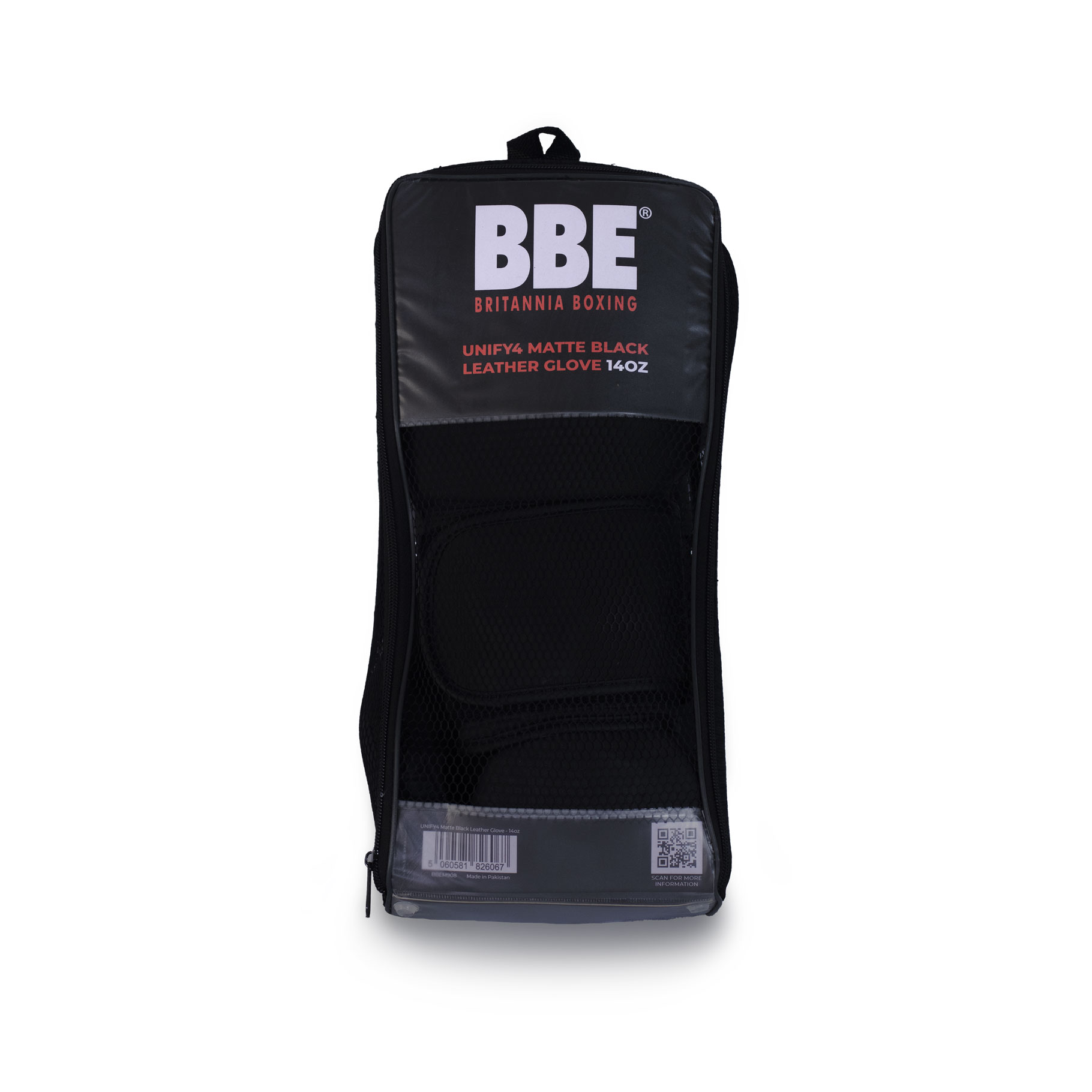 UNIFY4 Matte Black Leather Boxing Gloves – 14oz